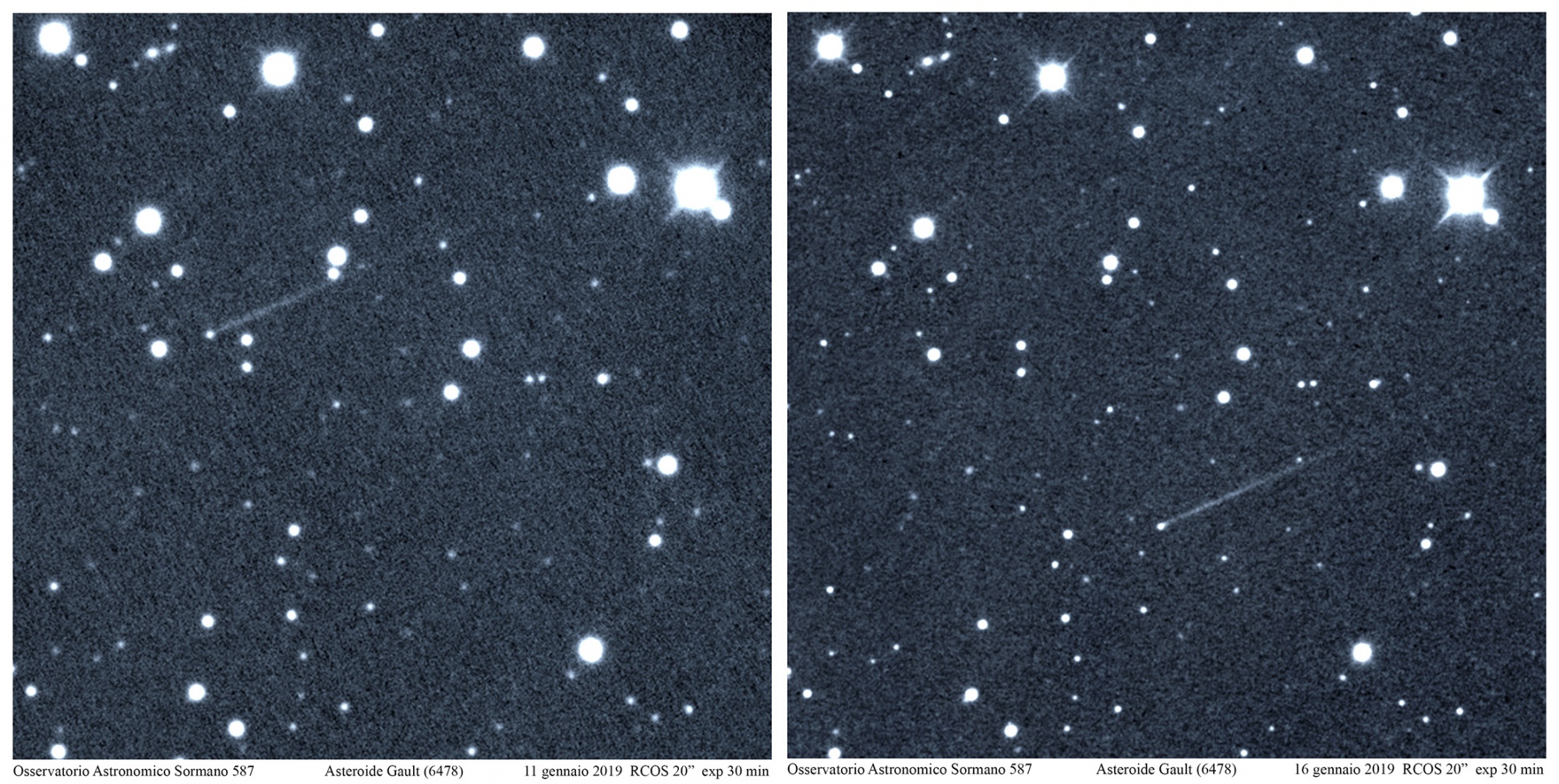 Grossa e' stata la sorpresa nello scoprire che in uno di questi, comprendente il pianetino - "(6478)Gault" -, anziche' il tipico aspetto stellare l'asteroide si presentava con una coda lunga e rettilinea.